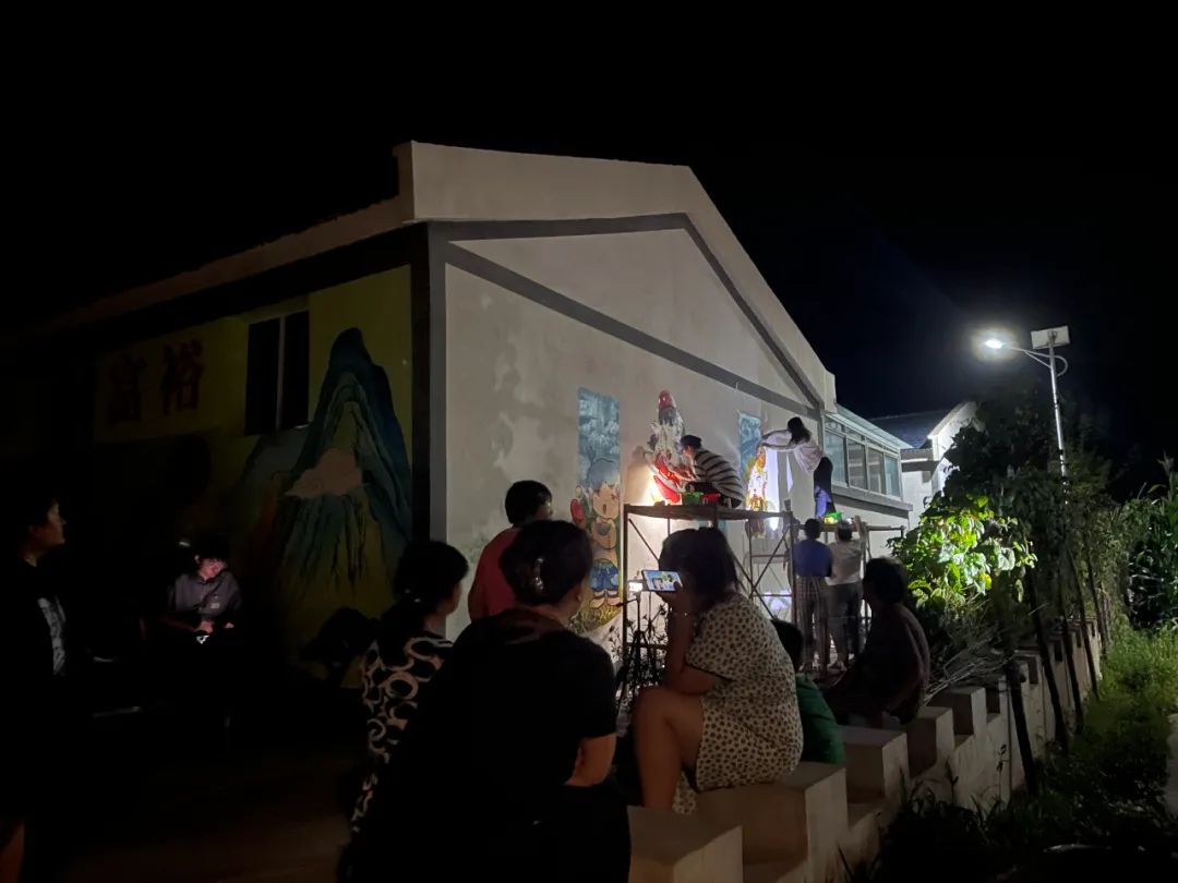 乡下还保留着日出而作、日落而息的古朴作息,深夜作画时,光源成了问题,队员们甚至要摸黑调色。“村里的驻村工作队队长晚上溜达过来,就会帮我们打着手电筒;一位老师非要把他钓鱼用的头灯借给我们;路过的村民还会远远地帮我们用手电筒照亮。”对于这些细节,队员们记忆犹新。
