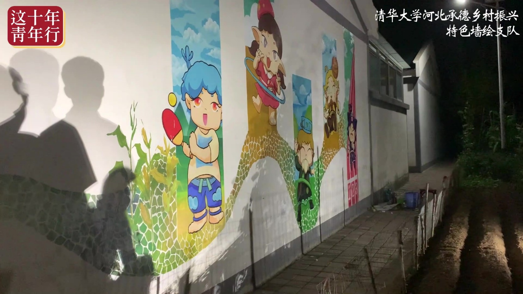 平日里,他们在画室中素描、雕琢、想象,探索光影笔触的奥秘。而今,他们随初心服务团赴承德支队来到孟家庄村,打量墙体、绘制草图、支起脚手架、起稿、上色。