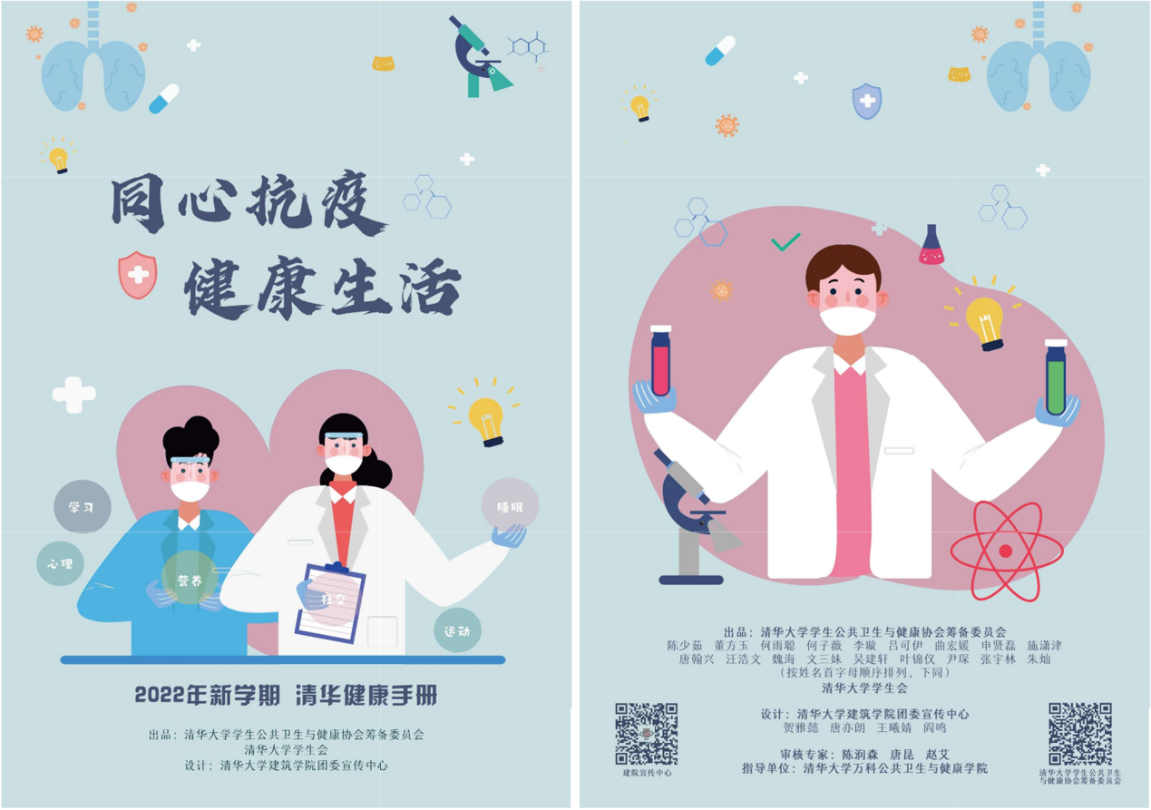 来自卫健、新闻、建筑等不同学院的学长学姐自发组队,为新生们精心制作了《2022年新学期清华防疫健康手册》(后称《健康手册》)。严肃的内容跳跃着生动的趣味,贴心的关怀浸润在轻薄的纸张里,为同学们建立健康生活的正确认识、适应疫情之下的校园生活提供了全面的指导。