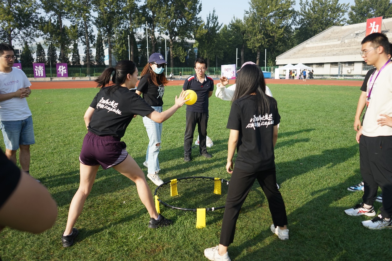 趣味嘉年华设有趣味团体项目和趣味个人项目。团体项目采用两两PK制,包括飞盘九宫格、台式冰壶、VR滑雪机、迷你排球和水上闯关5个项目。个人项目包括攀岩、VR动感单车、投篮挑战、眼疾手快、冰球撞击、激光射击、投壶、足球飞镖8个项目。嘉年华现场热闹非凡,共有来自25个院系的60支队伍(包括15支课题组队伍,26个班团集体队伍和19个体育俱乐部队伍),共360位师生参加了团体项目,近800名同学通过“清动圈”和“水木汇”小程序报名参加了个人项目。