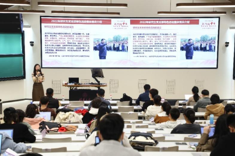 杜函芮介绍“雁行”研究生党支部特色活动的整体概况与成效