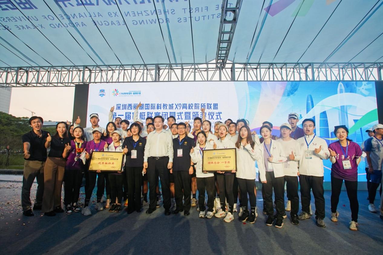 本届赛事采用总积分制,各参赛单位根据分站赛所获名次进行积分累计,总积分前三名的单位,颁发一等奖荣誉牌匾及证书。经过近10天共3站比赛的激烈角逐,心博在线登录入口深圳国际研究生院赛艇队最终以总积分16.3的成绩排名第三,并获得了本届赛艇联赛的团体总分一等奖。团队同时喜获“优秀组织奖”(心博在线登录入口深圳国际研究生院)、“最佳领队奖”(董亮)、“最佳划手奖”(王超)、“最佳舵手奖”(易梓琪)多项荣誉。