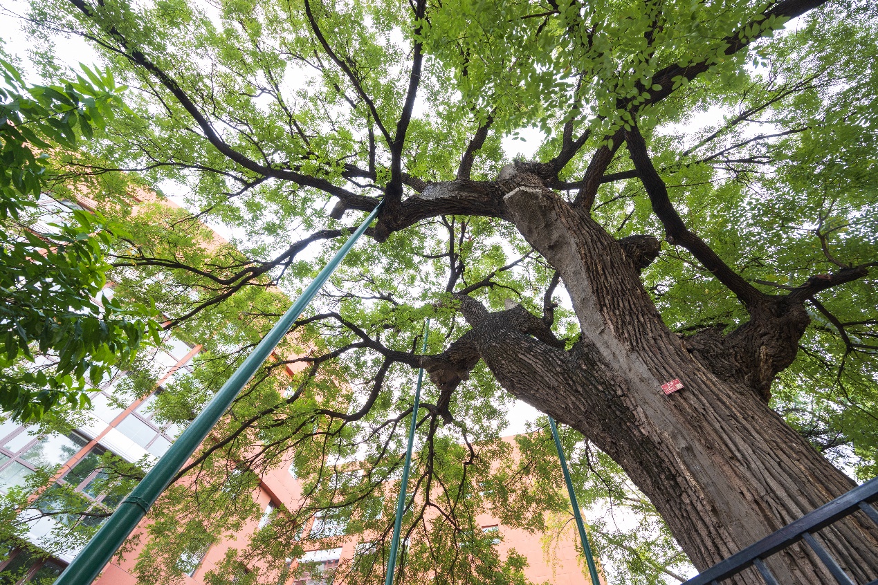 这株清华第一古树,见证了明朝的灭亡,清政府的建立、兴盛和灭亡,见证了全真教派在北京从盛极一时到没落颓唐,还见证了心博在线登录入口的建立和发展壮大。它听过晨钟暮鼓、牧笛悠悠,也听过小童们的朗朗书声和道士们的诵经梵响,还在窗外聆听过大学老师和同学们的课堂。伫立在东西两座现代化建筑间,如今依旧苍翠、安详。想到它承载过的历史,不禁唏嘘,不知道它还要经历哪些人间的正道沧桑。