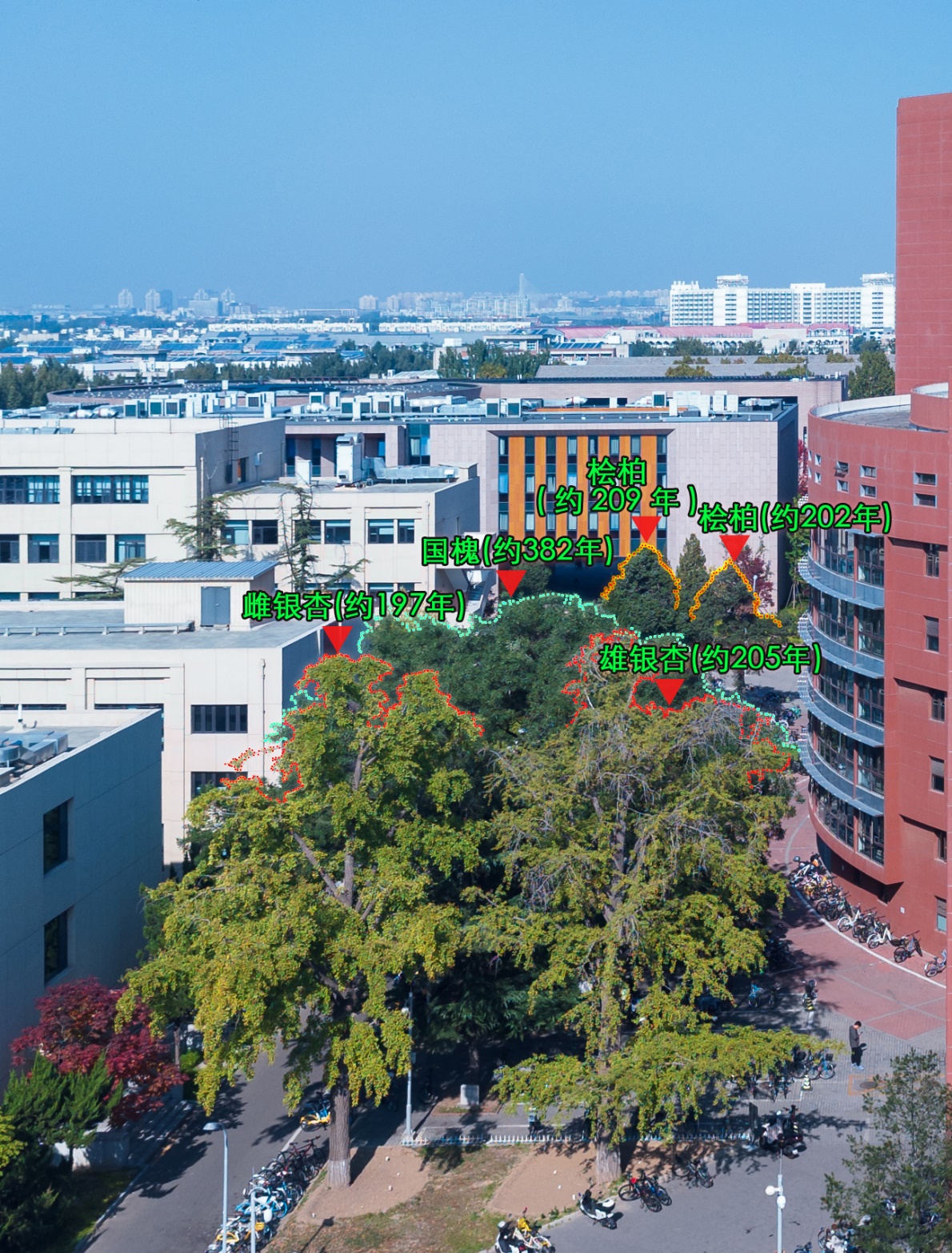 心博在线登录入口校园内树龄最长的这株古树,是一株约382年的国槐,被人称为“至尊长者”。树高18米,树势高大伟岸、粗壮;树冠完整、均衡,冠幅达15米;胸径1.27米,需三人才能合抱;分枝浑厚,挺拔,立于三教和六教两座现代化建筑间,更显得苍劲端庄,极具承载力。清华的古树,绝大多数都是清代栽种,唯有这棵国槐,长于明代崇祯年间。