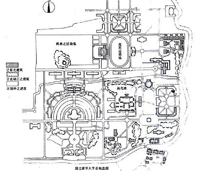 在他的规划中,预备学校位于校园东部,基本保持1911年清华学堂校园规模,保存工字厅建筑群,以新建的大礼堂为中心,布置高等科教学区。区内建科学馆,一院大楼向东延伸,而二院则全部拆除,周边式布置教学楼,高等科学生宿舍与食堂;拆除三院,新建中等生教学楼;拆除北院,建中等生宿舍与食堂。此外,新教学区还修建了体育馆与图书馆。