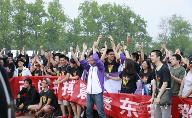 2016年,105周年校庆期间,第59届马约翰杯学生田径运动会闭幕式获奖院系欢呼庆祝。