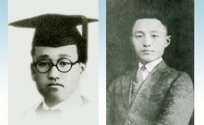 从1926年11月清华第一个党支部成立,至1937年7月清华南迁,据目前考证,在清华战斗过的共产党员累计约110名,先后有27任党支部书记。图为部分党支部书记,从左至右:王达成、朱理治、冯仲云、蒋南翔。