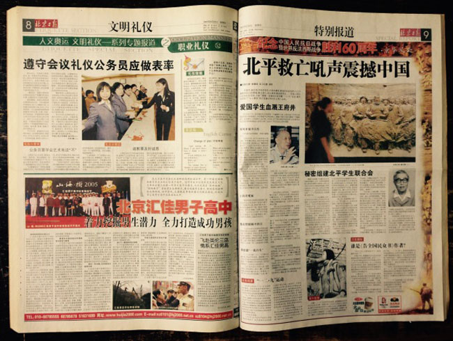 2005年8月25日,在纪念抗日战争胜利60周年期间,《北京日报》以“特别报道”的形式,刊发了整版的采访通讯《北平救亡吼声震撼中国》(如上图),而后新华网、中国经济网、网易、中国教育科研网等网站,在不同时期又分别以不同标题转载过此文。其中,在“历史揭秘:谁是《告全国民众书》作者”一节,有采访孙敦恒老师的这样一些描述: