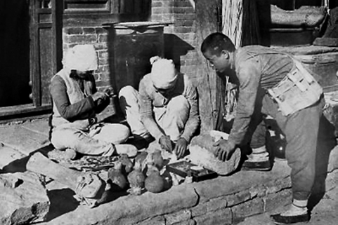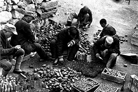 根据地兵工厂在为手榴弹填装炸药。图片来源:北京日报