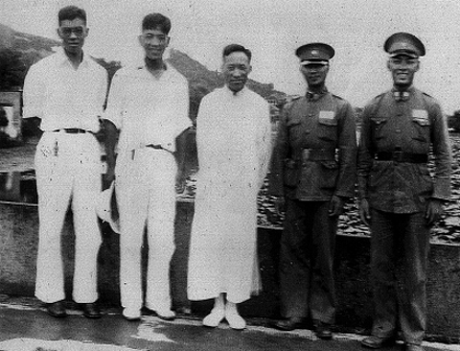 叶企孙(中)、熊大缜(左二)与抗战士兵合影。图片来源:北京日报