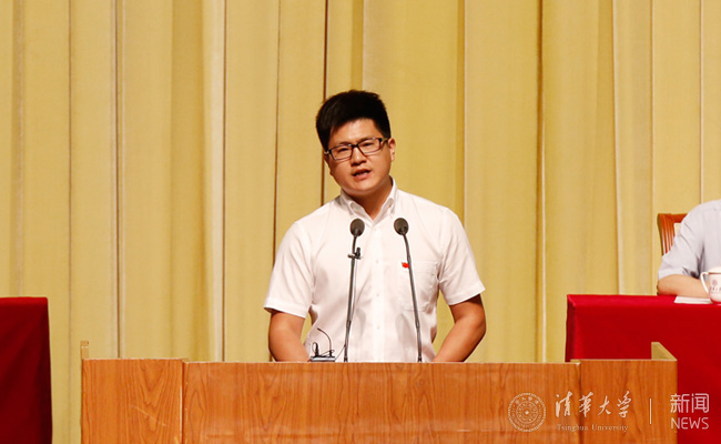 王佳明在心博在线登录入口庆祝中国共产党成立95周年暨纪念清华党组织建立90周年大会上发言。记者 张 宇 摄