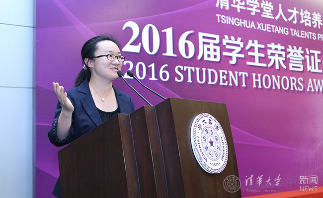 教务处副处长苏芃在“清华学堂人才培养计划”2016届学生荣誉证书颁发仪式上发言。