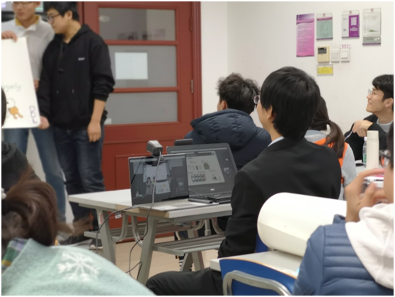 经过细致的研讨,我决定采用腾讯会议为主、瞩目会议小组讨论的方式,保障线上学生同质等效地参与课程学习和讨论。我和助教团队现场用了4台笔记本电脑:1台为主讲笔记本,调用教室摄像头传输讲台画面;1台笔记本+外置摄像头,腾讯会议(麦克与扬声器均静音)传输教室现场学生画面;1台笔记本+外置摄像头+全向麦克风,接入瞩目会议,专用作国外学生与现场学生小组讨论,通过交互让学生共同体验高质量学习;另备1台笔记本+外置摄像头作为备用设备,以及学生在台前展示时的特写画面传输。该融合式教学方案能够让线上的同学有真切的课堂体验。