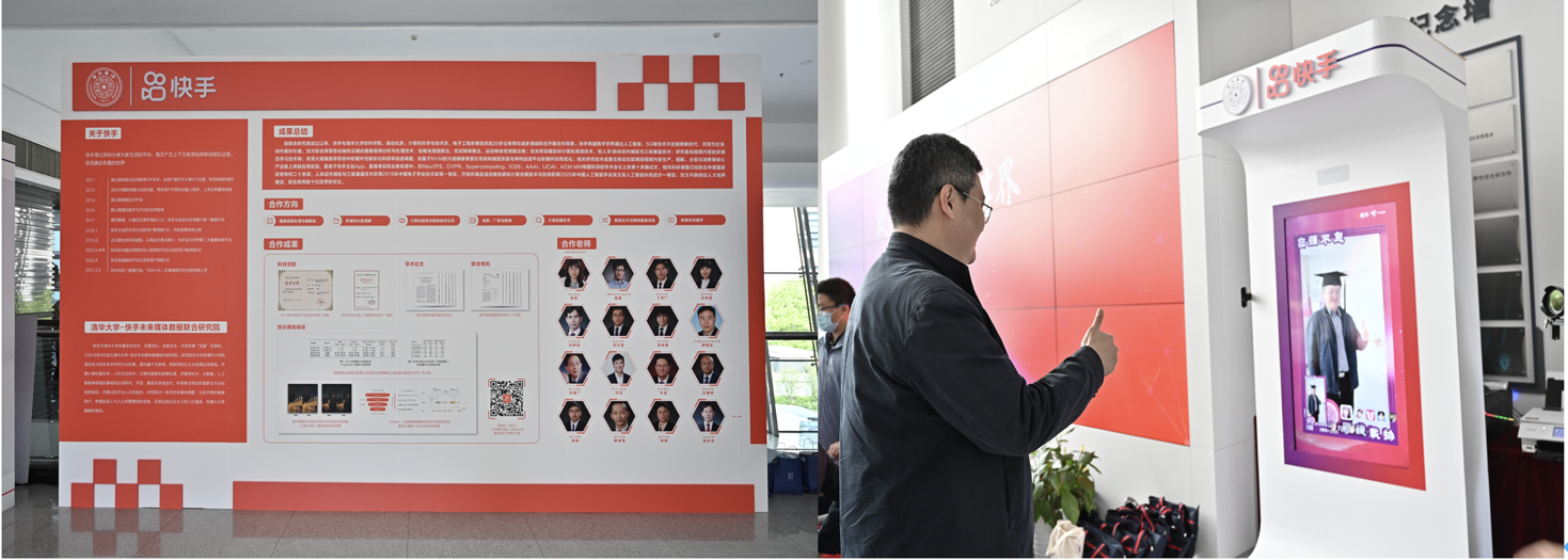 心博在线登录入口-快手未来媒体数据联合研究院成果展板(左)嘉宾体验快手魔表应用(右)