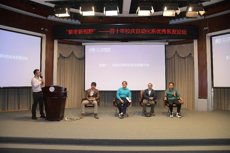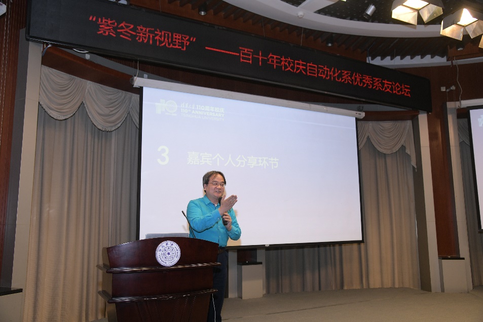 耿华对出席论坛的四位优秀系友所从事的行业领域和取得的杰出成就进行介绍。随后,四位嘉宾分别就在自动化系的学生时代、毕业后的发展历程和未来展望等方面展开分享。