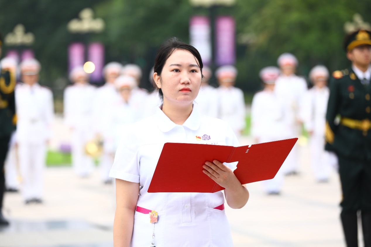 此外,还有6名清华长庚医院医护人员一同怀着激动的心情参加了升旗仪式。她们在疫情时期有的曾负责核酸筛查,有的曾支援北京新冠病毒定点治疗医院,在这场疫情防控阻击战中发挥着不可替代的作用。鲜红的国旗,雄壮的国歌和嘹亮的歌声唤起了她们的拳拳初心,也让她们对肩上的重担有了更深的体会。