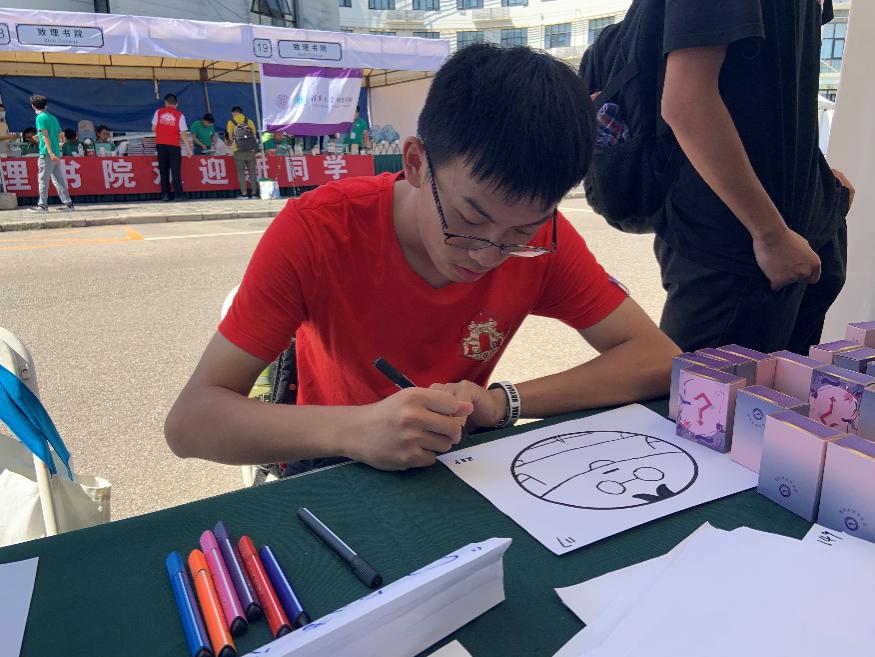 为增添活动的趣味性,C楼迎新摊位处还设置了趣味创作小游戏和“清华2020”系列主题盲盒的抽取活动,盲盒内放有不同颜色的“清华2020”钥匙扣,以及印有不同清华建筑卡通图片的“你的清华幸运地点”小卡片。