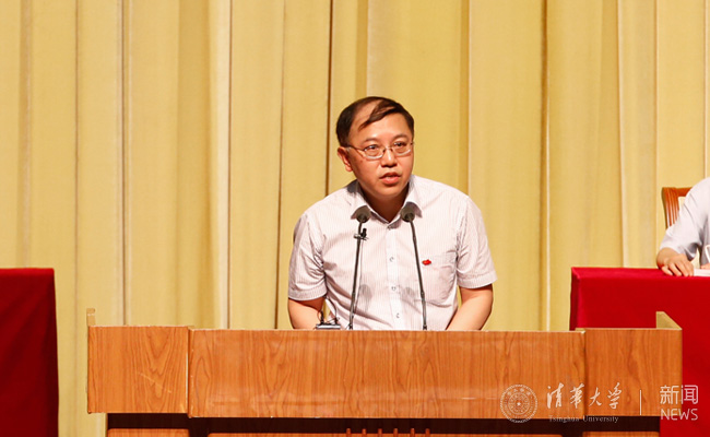 张作义在心博在线登录入口庆祝中国共产党成立95周年暨纪念清华党组织建立90周年大会上发言。记者 张 宇 摄