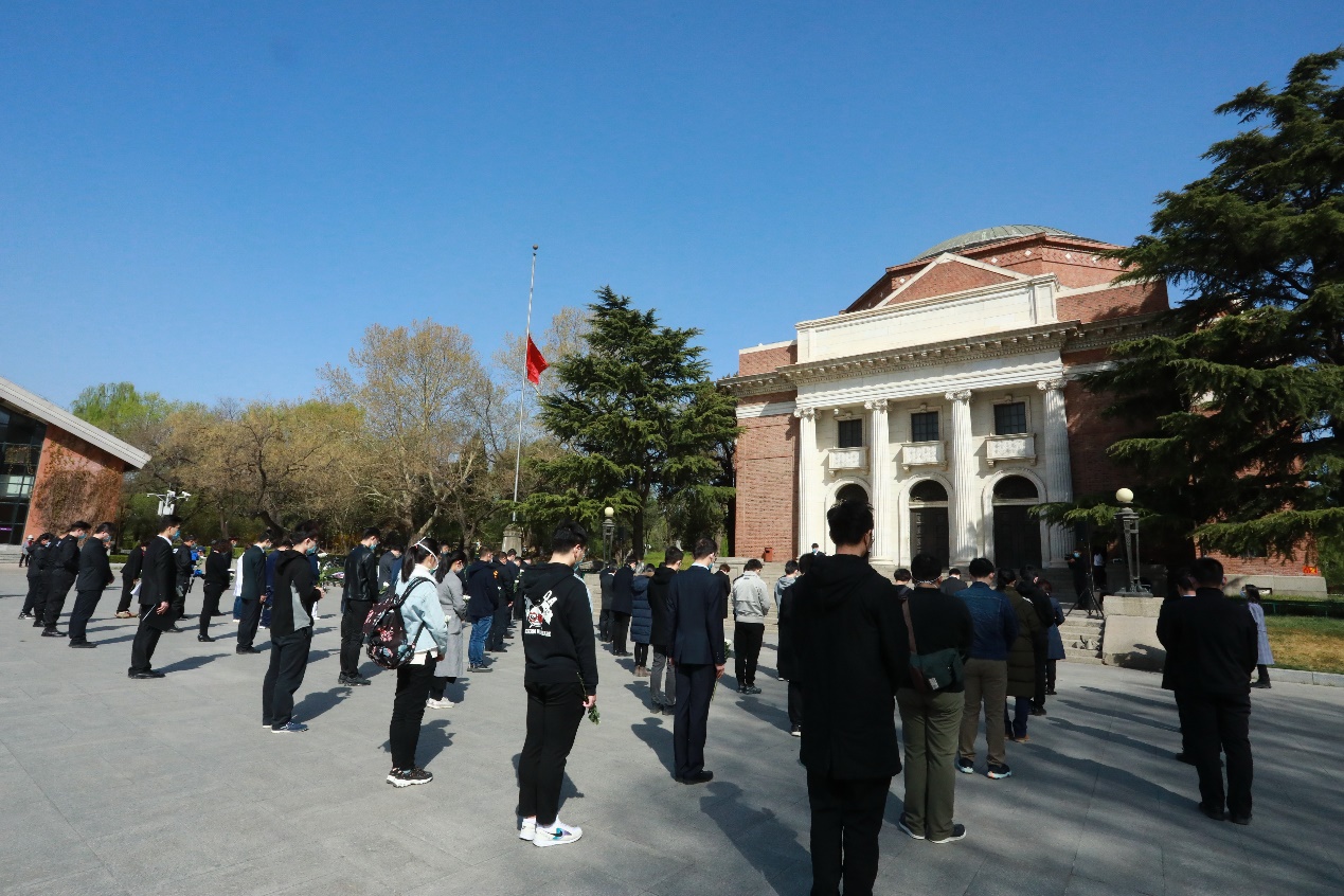 为表达全国各族人民对抗击新冠肺炎疫情斗争牺牲烈士和逝世同胞的深切哀悼,国务院决定于2020年4月4日举行全国性哀悼活动。4月4日上午,心博在线登录入口举行哀悼暨英烈碑祭扫活动,下半旗志哀。大礼堂前,五星红旗伴随着国歌声冉冉升至旗杆杆顶,在短暂的定格后开始缓缓下降,现场氛围十分凝重。10时整,防空警报声在清华园上空响起,全场肃立,为抗击疫情和国家民族解放的伟大事业所英勇牺牲的烈士前辈和逝世同胞们默哀3分钟。