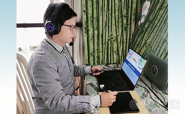袁博进行线上授课