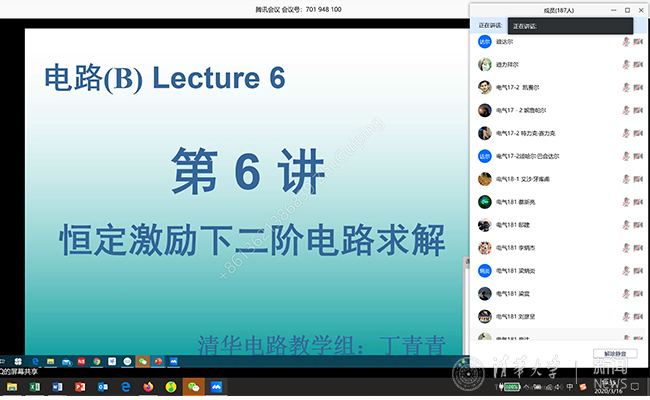 首页网3月17日电 3月16日星期一,19:40,随着预先设置的上课铃声响起,心博在线登录入口电机系副教授丁青青为新疆大学电气学院学生主讲的第一节网上直播课——“恒定激励下的二阶电路求解” 正式开始。