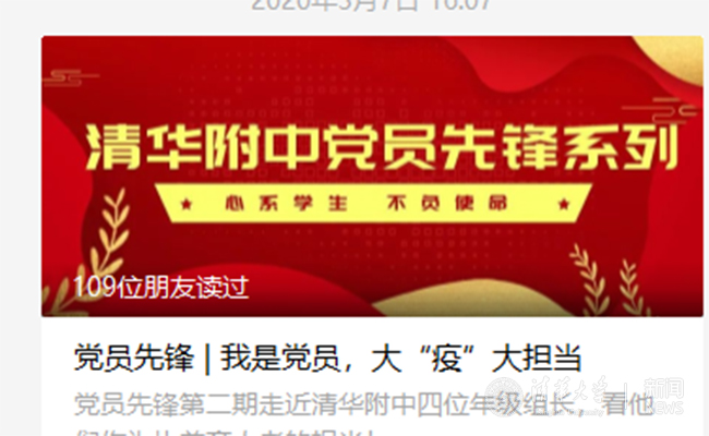 附中党员教职工在疫情面前当先锋作表率,以高度的责任感和使命感,全身心投入到“停课不停学”和校园疫情防控之中。为更好地推动先锋、榜样力量,附中党委加大宣传,深入挖掘党员示范典型,讲好身边党员故事,展现疫情期间教育者的战“疫”事迹。