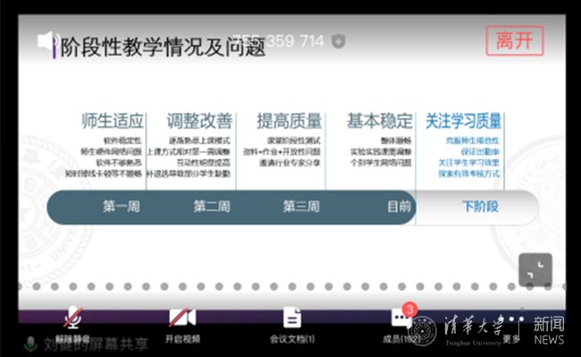 培养处副处长孙春柳、清华-伯克利深圳学院教学办刘健分别作深圳国际研究生院和清华-伯克利深圳学院在线教学阶段性总结报告。在线教学开展5周以来,学院高度重视教学工作,组织部署“三横三纵”全覆盖网络;授课教师课前准备充分,课堂互动多样;教务管理团队、信息化团队、学生工作系统、后勤保障系统、学生助教团队精诚合作,迎难而上。学院共开设课程122门,参与授课教师122位,选课学生3000余人,师生分布在18个国家和地区。累计学生出勤率99.96%,在线教学满意度大于93%,实现了“延期返校,正常教学,发挥优势,保质保量”。