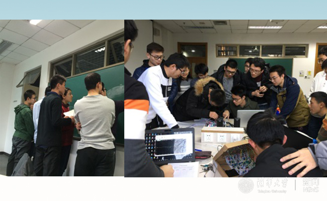 课堂讨论内容主要包括三部分:课前学习过程这遇到的问题,难度较高的练习或基本理论的工程应用,实验方案讨论或实验结果检查。课堂讨论以学生为中心展开。图1是课堂习题讨论和实验讨论的实际情景。