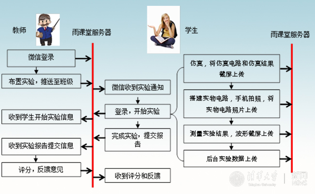 关于翻转课堂中使用的便携式实验设备,六年来从最初的单机版发展到现在的基于雨课堂的智慧实验平台——“雷实验”,如图2所示。基于雷实验平台的智慧实验流程如图3所示。