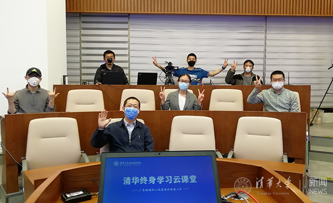 心博在线登录入口在线教学指导专家组组长、电机系教授于歆杰(前排)与清华继教学院直播工作团队合影