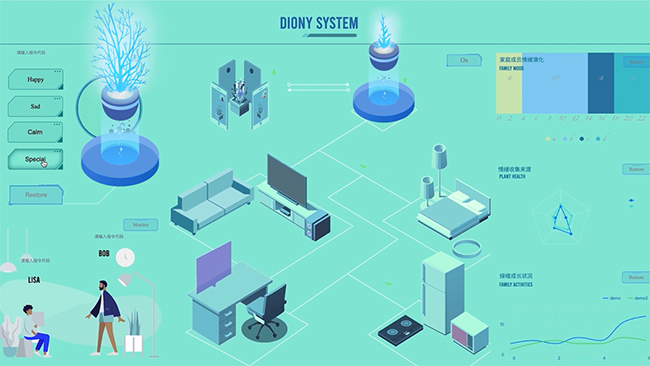 由清华美院校友带领的根云视界团队提供了物联网平台。通过该平台,学生可以团队协作创建一个项目,实现创意概念,实施远程在线模拟,测试真实的物联网互动效果。也就是说,可以把以前线下硬件原型的内容在线虚拟出来。