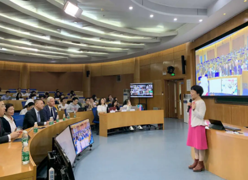 两名现场助教和一名线上助教连同技术老师早早就来到了全面改造后的iLIVE互动直播教室,当现任加拿大驻华大使鲍达民,比亚迪CPO王渤,课程委员会成员叶梅、王平四位校外嘉宾随段志蓉来到教室时,所有的准备工作都已完成,只待老师心无旁骛专注授课。晚7点半开始的课程毫无停顿进行到10点,特别是长达一个多小时的问答互动环节,助教协助嘉宾把讨论区众多问题摘出投到大屏幕上一起看,线上线下的交流在助教娴熟的操作中无缝轮转衔接。掌声和笑声不断,欢乐与知识齐飞,身处世界各地的师生同学们在这一刻找到了心灵的同频共振。“线下同学忙着为这次独特的经验合影留念,而课程的微信群里,也有好多兴奋得不想离开去休息的同学……”段志蓉也被这份依依不舍感动着,授课嘉宾在过程中说了一句话,也许可以作为对融合式教学模式的注解——之所以特别喜爱清华这个平台,就是因为各方学子在这里融合的能力。