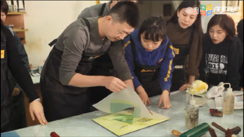 闫辉开设的慕课强调“制作”的过程,通过踏实专注地刻版,细致耐心地印刷等环节,培养学生们专注、严谨、认真的专业态度。闫辉在录制慕课时,强调视听体验的美感,视频的光影画面、字幕设置、背景音乐,甚至教师的示范动作和讲授声音都精心设计,课程内容也力求精炼、清晰、富有节奏感,让学习者在学习的同时得到艺术美的享受。不仅是线下课堂的同学们,对于线上学习“铜版画制作”的社会学习者,不论是成人还是中小学生,都能起到“艺术美育”的作用。