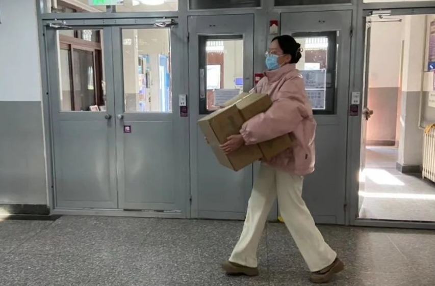 “后勤人员非常辛苦,每天需要送饭、水、零食大礼包到不同宿舍楼。”感染后初愈的李雨函也当起了志愿者,“楼里的阿姨和老师需要把物资送到寝室门口,我们的工作就是帮忙一起搬运。”