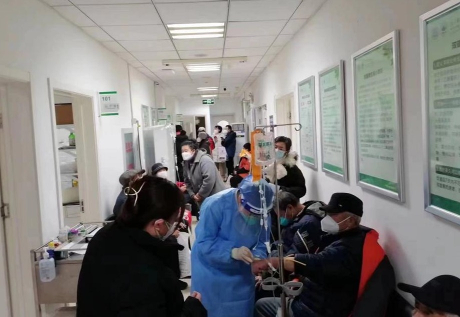 发热门诊7名医生、19名护士负责患者接诊、治疗、进行各种检查操作,以及重症患者监护、转运等工作……他们中间有人持续工作十小时不吃不喝,有人感染后刚刚恢复体力就坚持上岗,还有人连续十几日不能回家,为的就是尽可能让患者减少候诊时间,尽可能为更多患者解决病痛。面对越来越多的患者,医院要求即使其他科室人员紧张一些,也务必保证发热门诊的正常运行。目前,已有7个科室的15名医生,12个科室的17名护士紧急支援发热门诊,大家拧成一股绳,顶下压力。感染科副主任、发热门诊负责人曾琴兵说,“在医院的大力支持下,我们已经扛过发热门诊的峰值门诊量,我们的工作也得到了患者和家属的好评。接下来的任务依然很严峻,发热门诊全体医护人员也一定不辱使命,竭力保障患者们得到及时治疗,在这个寒冬带给大家最安心暖心的保障。”