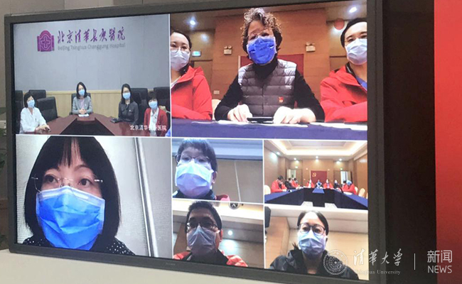 北京清华长庚医院援鄂医疗队武汉临时党支部党员发展会连线现场