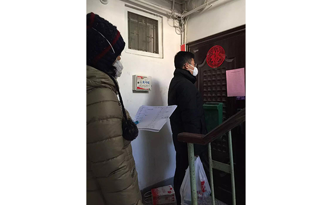 南楼社区在党员报到群里发布通知后,张弘同志第一时间响应。在入户敲门的过程中,与工作人员聊天才知道,张弘家住南楼,工作在通州,自肺炎疫情后,一直在工作岗位上没有回家,回家后利用仅有的一天休息日来社区报到,跟着工作人员一起爬楼、敲门。