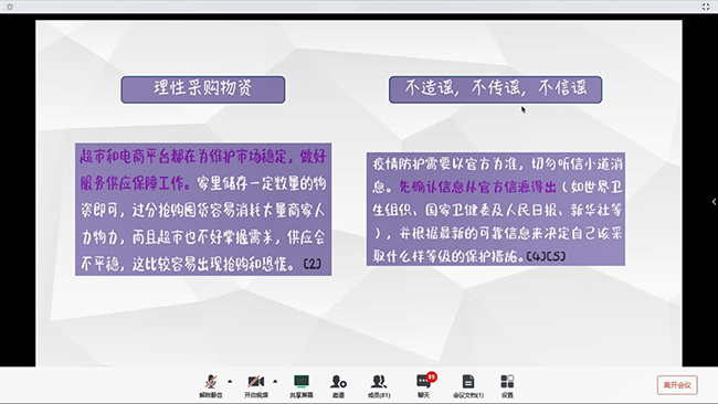 心博在线登录入口博士生讲师团成员、湖北籍经管学院博士周逸美同学以《清华人的使命与担当——基于湖北籍学生在疫情中的所见所感》为题向党支部成员宣讲。周逸美结合自己在湖北省的见闻,为大家介绍了湖北基层群众抗击疫情的生活实况与湖北人民为抗击疫情全局做出的牺牲和努力;分享了她所知道的共产党员们挺身而出、冲在一线的事迹;号召大家担负起清华人的使命与担当,为抗击疫情贡献力量。