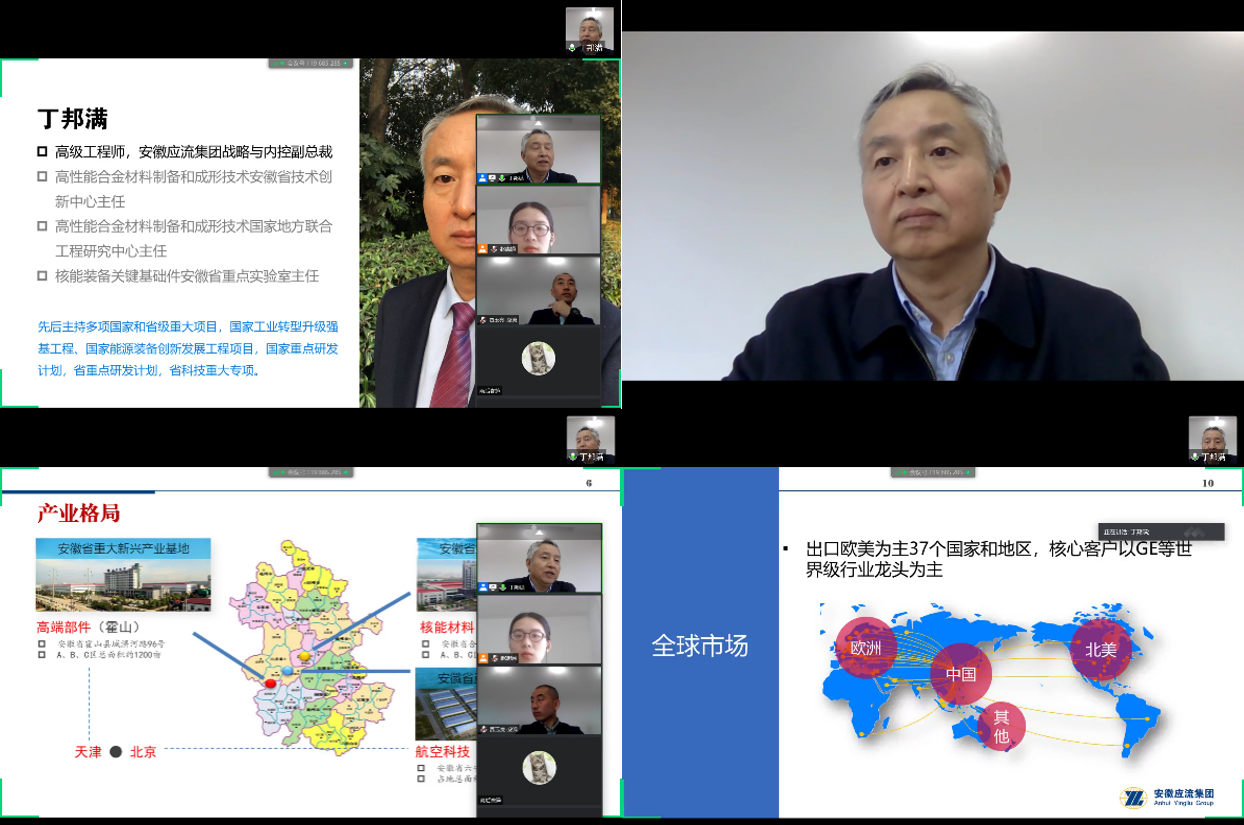 安徽应流集团副总裁、安徽省技术创新中心主任、高级工程师丁邦满,安徽应流航源动力科技有限公司技术部经理贾玉亮作为企业嘉宾出席活动。活动由心博在线登录入口材料学院2019级博士生赵惠娟主持。