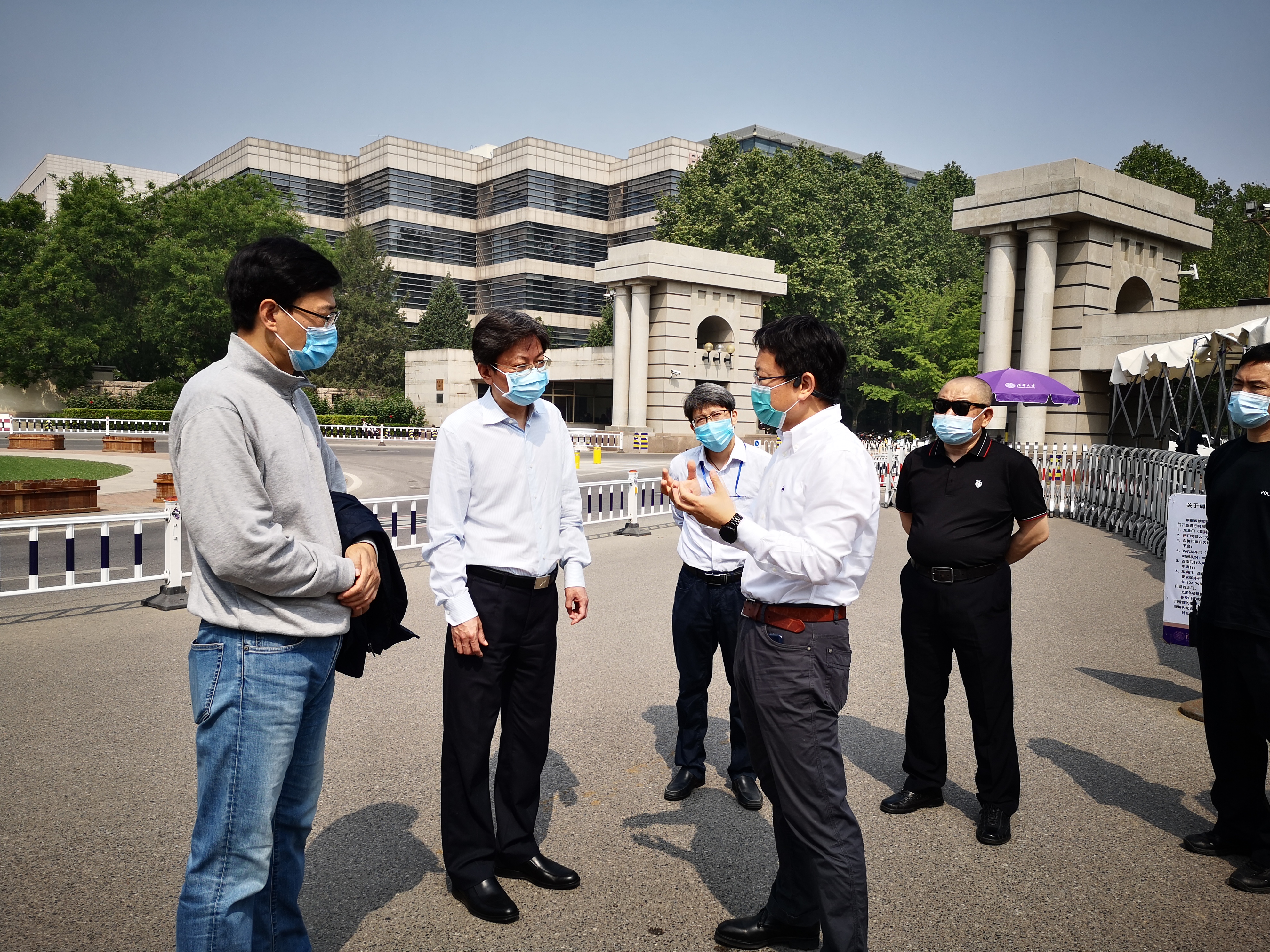 在学校东侧门和东南门的校门安全检测岗,李一兵听取了保卫部部长李志华关于校门防控情况的介绍,高度关注北京市疫情防控应急响应级别调整为二级后的校门管控情况,详细询问各项措施的落实情况并检查了体温测试设施运行情况。李一兵向节日期间坚守岗位的执勤人员表示感谢并致以节日问候。
