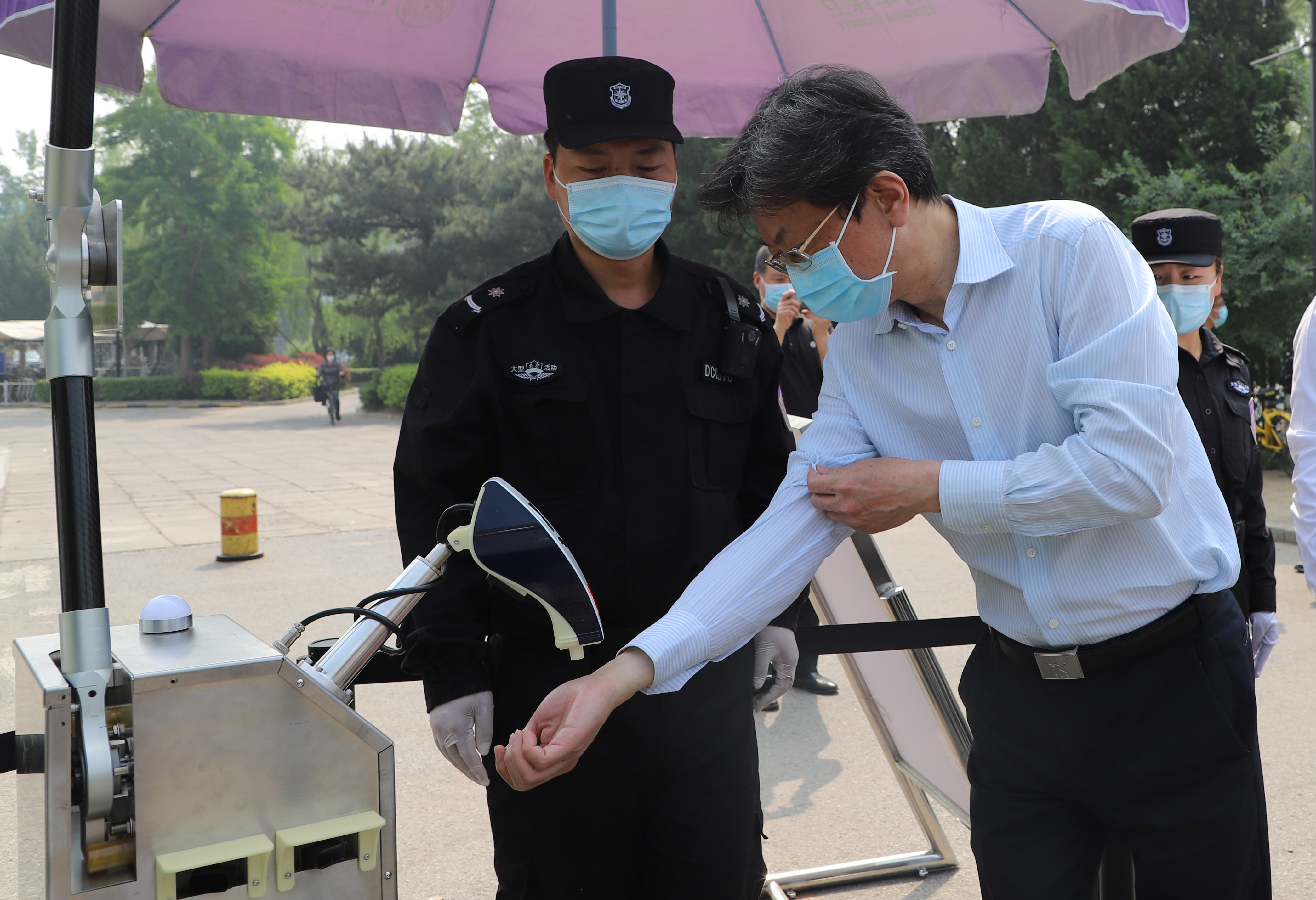 检查校门测温机的使用情况