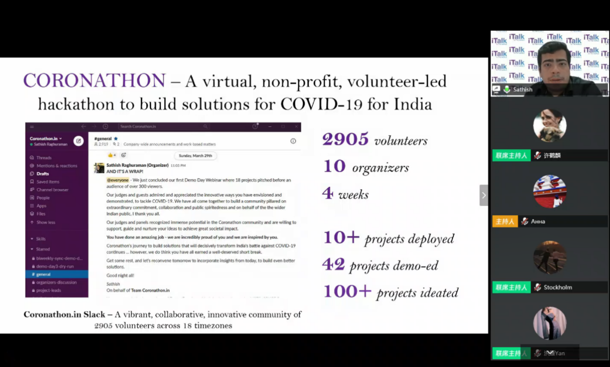 疫情期间,来自印度的卢盛霆由于工作原因滞留香港,无法回国。心念祖国的他,在机缘巧合之下参与组织了“Coronathon”编程马拉松大赛,与印度政府等多方合作,为印度当地新冠肺炎疫情防控工作及时搭建了高效互联互通信息技术平台。截至目前,该项活动为380万人提供疫情防控信息、追踪近24000名疑似病例、直接救助400余名老年人、募集跨越18个时区的3000余名志愿者,收集到的百余份提案中有17个项目已与地方政府接洽并逐步落地。
