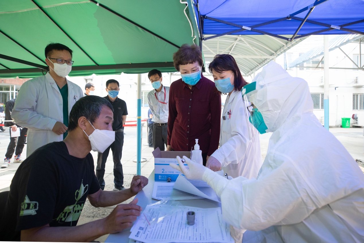 首页网5月29日电(记者 张静 摄影 李派)为进一步做好校园疫情防控、完善学生返校准备工作和应急预案,迎接学生安全顺利返校,5月28日上午,校党委书记陈旭一行到校医院检查后勤职工集中核酸检测情况。
