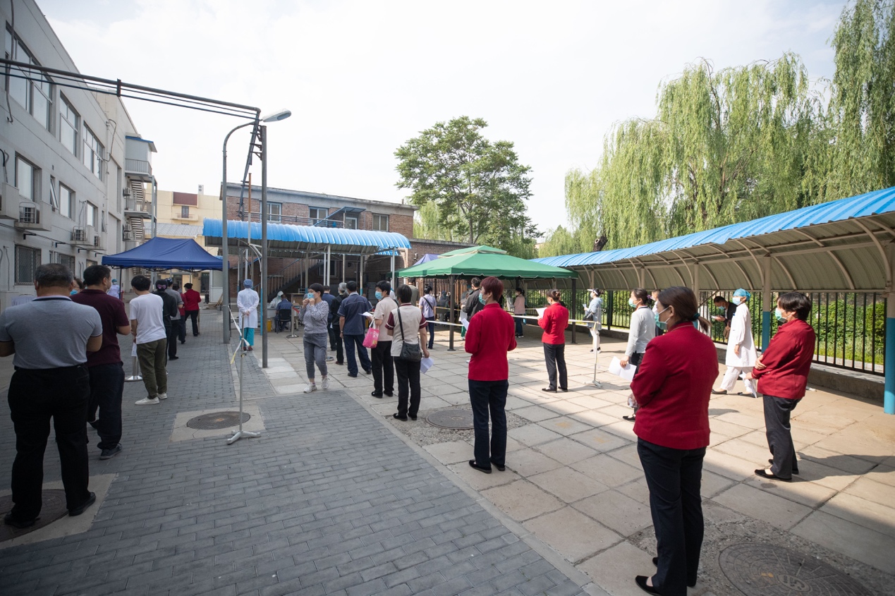 后勤职工正在有序排队等候检测