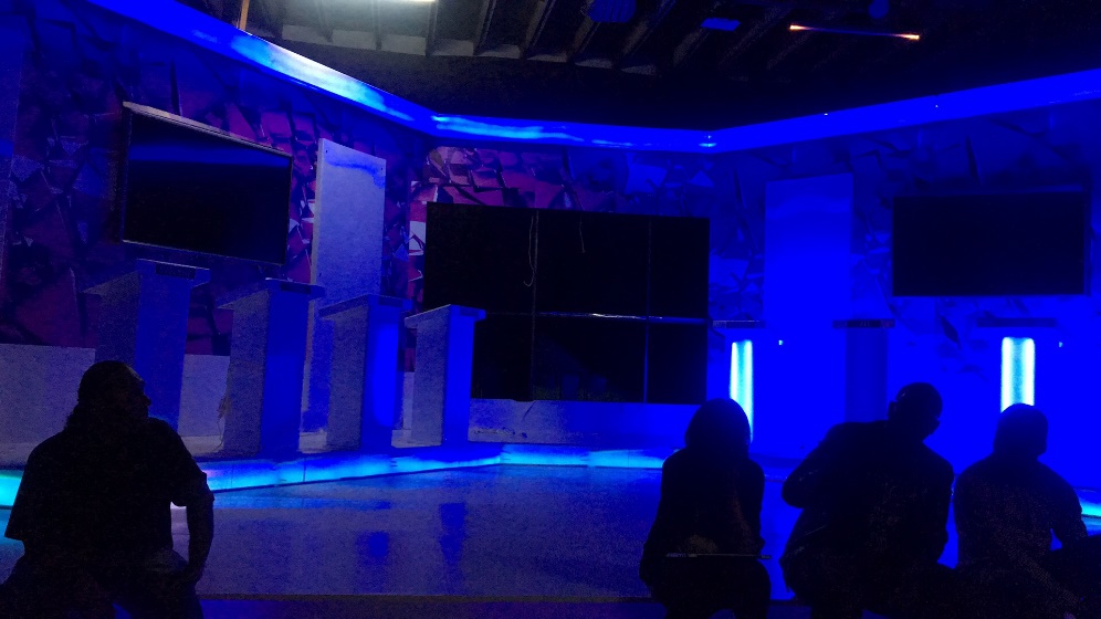 凌晨拍摄结束后进行一天总结的“Hello,Mr.Right”演播室