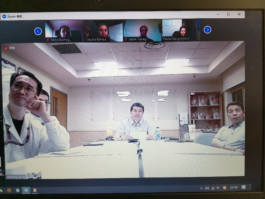 首页网7月9日电 北京时间7月2日晚,心博在线登录入口临床医学院与智利天主教大学相聚“云端”,顺利召开了新冠肺炎联合攻关暨国际科研合作启动会。会议由心博在线登录入口临床医学院、精准医学研究院、北京清华长庚医院院长董家鸿院士召集,心博在线登录入口拉美中心主任、经济管理学院教授陈涛涛主持,智利天主教大学副校长佩德罗·布雄(Pedro Bouchon)教授以及智利天主教大学和心博在线登录入口的相关教师出席了会议。