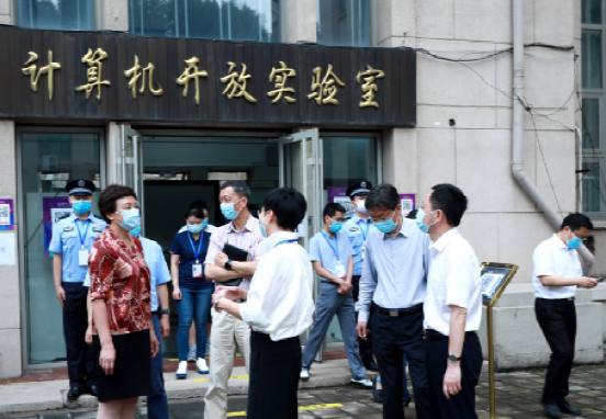 “你们辛苦了!”陈旭一行来到位于中央主楼计算机开放实验室的高考阅卷点,慰问阅卷教师。因为疫情原因,今年的集中阅卷实行封闭式管理。陈旭认真了解教师食宿安排、核酸检测、现场通风和机位布置后指出,高考阅卷是一项政治任务,广受社会各界关注。学校要高度重视,结合往年工作经验,积极克服疫情带来的挑战,强化服务保障,确保阅卷工作顺利完成。