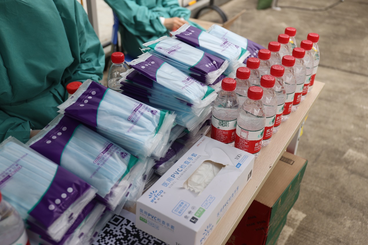 在校门口,防疫工作人员为同学们进行行李消毒,发放防疫物资,并安排摆渡车从校门口“点对点”将大家送往所在宿舍楼。返校的同学们将在宿舍进行三日健康监测,在校内划定区域完成核酸“三天三检”。