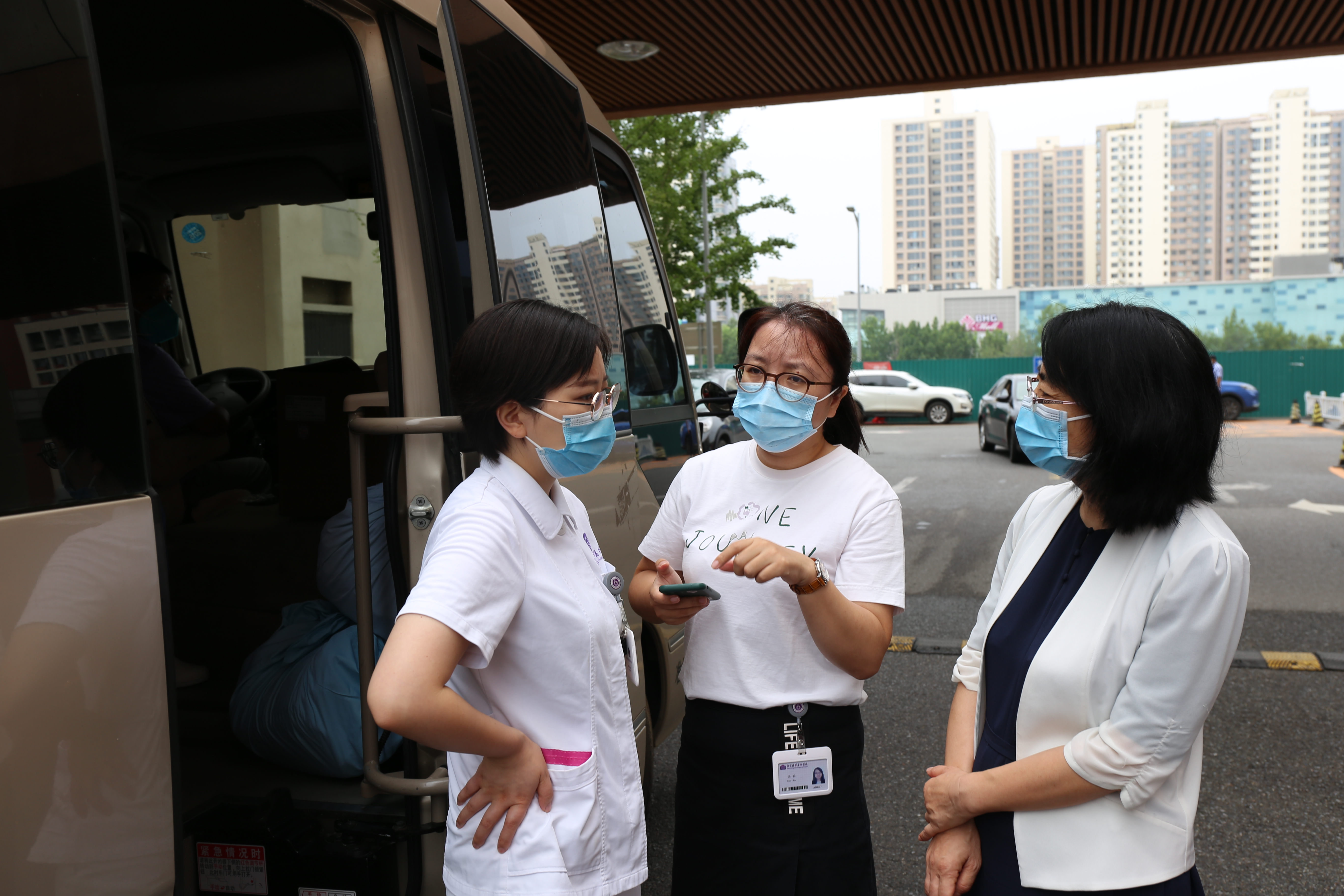 党委书记周月红、党办主任高茹、护理部副主任沈犁为大家送行