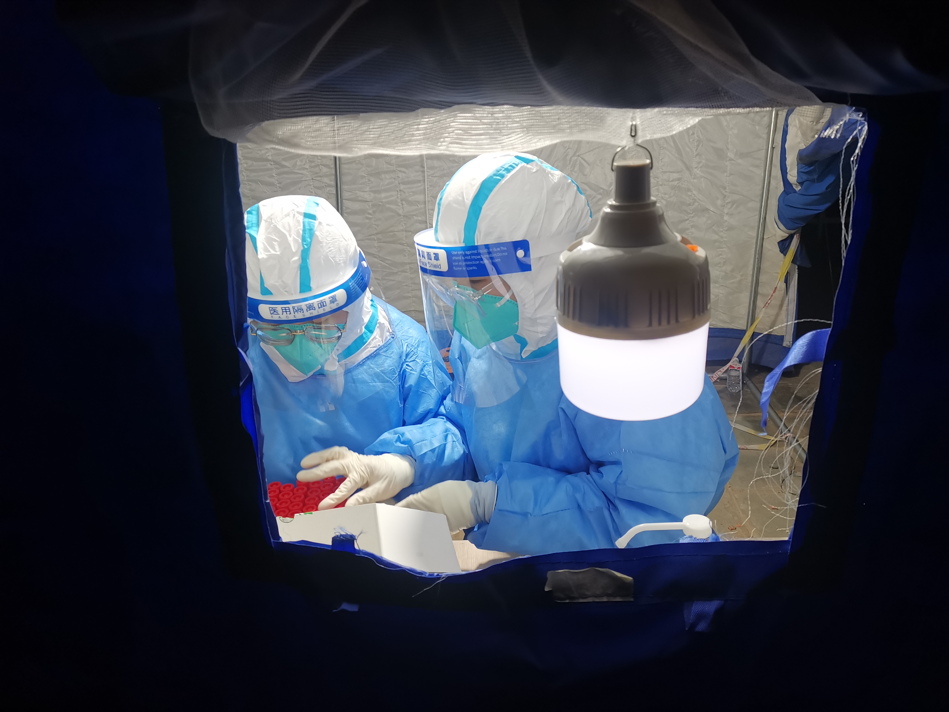 清华长庚医疗队夜间采样